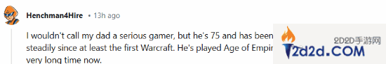 “我不会称我父亲是一名资深游戏玩家,但他已经75岁了,至少从第一款《魔兽争霸》开始就一直在玩RTS类游戏,很长一段时间内,他几乎每天都玩《帝国时代2》。”