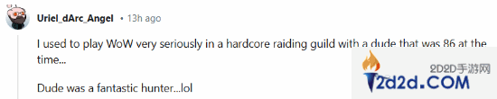 “我曾经在公会里和一个86岁的家伙一起玩WOW,老兄是一位出色的猎人哈哈。”