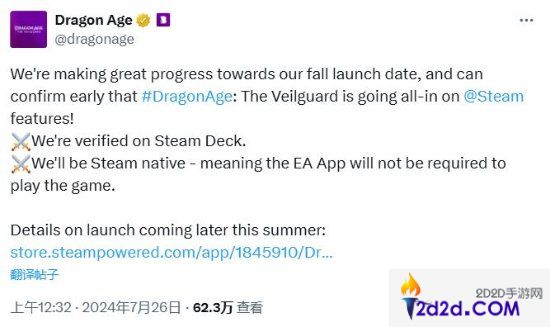 《龙腾世纪4:影障守护者》目前已经通过SteamDeck认证,这意味着它能够在SteamDeck掌机上完美运行,此外,官方还宣布,《龙腾世纪4》将会在Steam上推出原生版本,玩家无需使用EA App即可在PC上游玩本作。