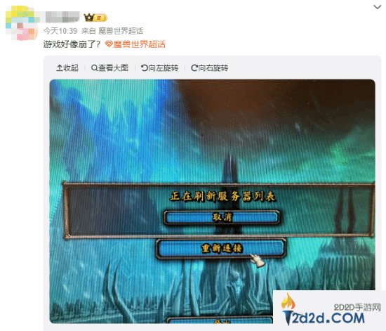 今日#魔兽世界崩了#的话题登上微博热搜,多位玩家反馈,《魔兽世界》服务器宕机,登陆界面显示“正在刷新服务器列表”“重新连接”,一直无法进入游戏。