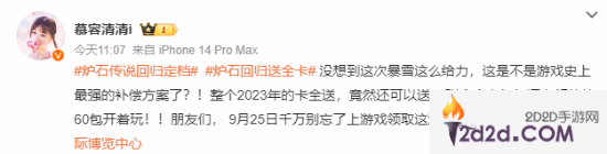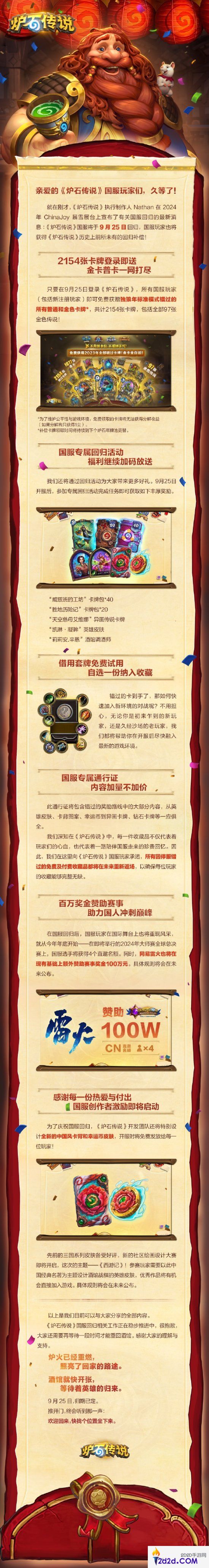 早些时间,《炉石传说》官方宣布国服将于9月25日回归,并公布了回归补偿方案:只要在回归当日登陆游戏,所有国服玩家可获得2023年错过的所有普通和金色卡牌,共计2154张,包括全部97张金色传说卡牌。