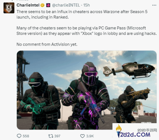 据多家媒体报道,《使命召唤20:现代战争3》登陆XGP后,《战区》的开挂者明显增多。许多玩家表示,大量作弊者利用XGP提供的便捷访问来逃避反作弊措施,导致正常玩家游戏体验极差。