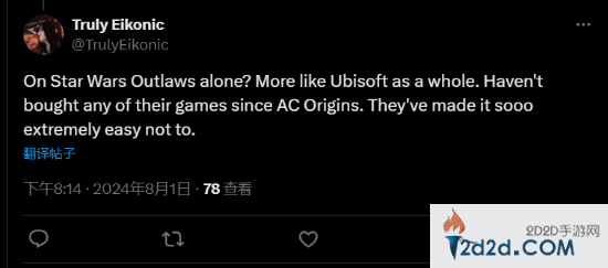 还有玩家表示:“只有《星球大战:法外狂徒》吗?现在整个育碧的角色们都是这样的。自从《星球大战:起源》之后,就没再买过他们的任何游戏。”