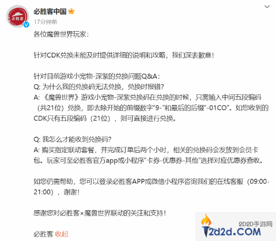 感谢您对必胜客×魔兽世界联动的关注和支持!