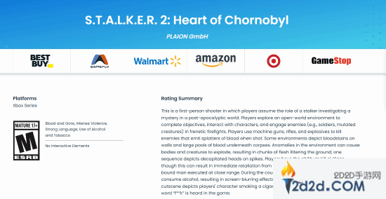 《潜行者2》近日在美国和加拿大获得了ESRB评级,评级为M/17+,《潜行者2》的发售日已定为11月20日。