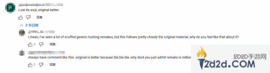 下方评论区有人表示:“虽然看起来画面更好了,但失去了灵魂。”这一观点引来了其他观众的质疑,有玩家指出:“总是会有这样的评论...说原版更好,因为balabala...为什么不承认重制版要比原版好一百万倍呢?”