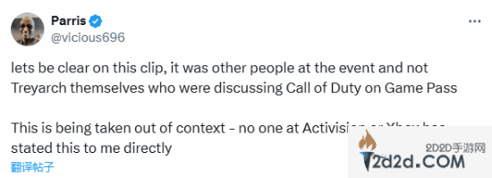 更新:Parris Vicious已澄清,此信息被断章取义,动视和微软Xbox并没有人说过这件事。
