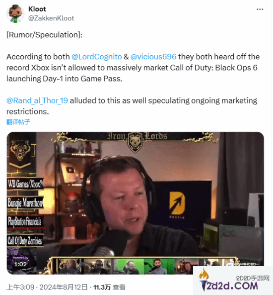 在一档播客里,Lord Cognito表示:“我听说他们(微软员工)真的不能在《COD》里做那部分(宣传《COD21》首发XGP)。Treyarch的一些员工认为这会是XGP的一件大事,但由于各种原因,你不会看到微软那种大幅度的营销宣传。”
