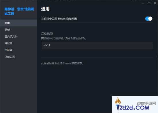 还是在库存中找到《黑神话:悟空测试工具》——右键选择属性——在启动选项中输入-dx11——关闭页面,启动测试工具。