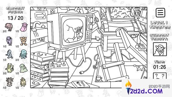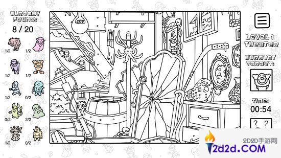 对于熟悉“寻物大师”系列的玩家来说,这款游戏并不陌生。游戏的玩法极为简单,只需在每个场景中移动鼠标,找到提示中的各种小怪兽即可。但与其他寻物游戏不同的是,《寻物大师:这里没有小怪兽》采用了独特的黑白线条手绘风格,每个场景宛如一本充满细节的黑白绘本。虽然画面看似简洁,但每个细节都经过精心设计,充满了作者独到的艺术表达。玩家在游戏过程中,仿佛在翻阅一本精美的儿童绘本,细细品味画面中的每一个用心之处。
