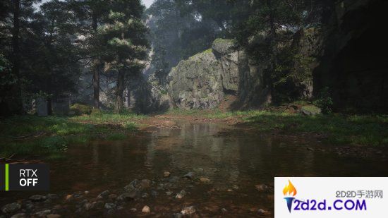 借助光线追踪技术的强大功能,反射画面现在也包含了光线反弹的细节,并以全分辨率呈现,让游戏世界得到显著增强,并进一步提升了沉浸感。如下面的对比所示,静止的水坑以令人惊艳的细节为周围区域营造出一个镜子般的表面。