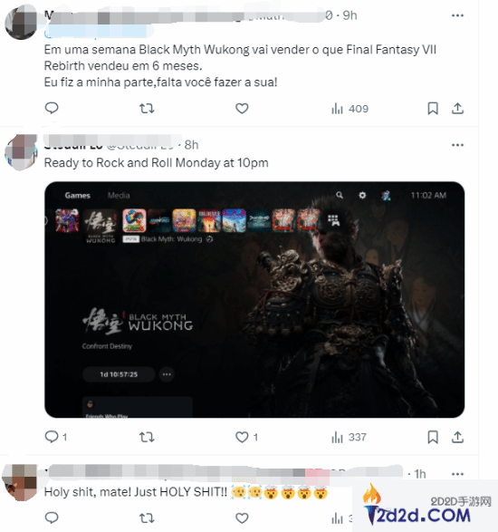 评论区的玩家也非常激动,表示自己已经准备好直面天命了。“一周后,《黑神话》将卖出《最终幻想7:重生》6个月的销量。你做你该做的,我做我该做的。”“好久没预购游戏了,看了评论后我终于预购了,已经等不及了。”“4090需要一款可以考验它的游戏。”“中国拯救游戏,我从来没想过会有这一天。”