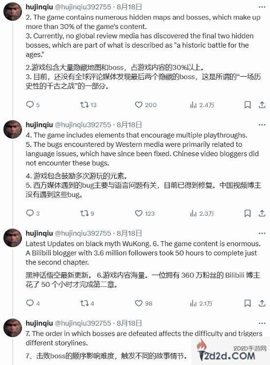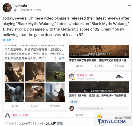 近日,国人玩家自发在海外X平台创建账号宣传《黑神话:悟空》,将国内各大测评UP的游戏评价展示给国外玩家看,简而言之一句话:不是老外评测的那样!