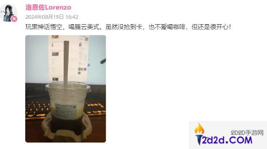 《黑神话:悟空》社区著名吉祥物兼黑神话吧主洛恩佐于今晚发文分享今日感想:“玩黑神话悟空,喝腾云美式。虽然没抢到卡,也不爱喝咖啡,但还是很开心!”等于说,继封闭试玩资格、实体收藏版购买资格、发售前评测资格之后,洛恩佐连联动的闪卡都没抢到,实在是惨。