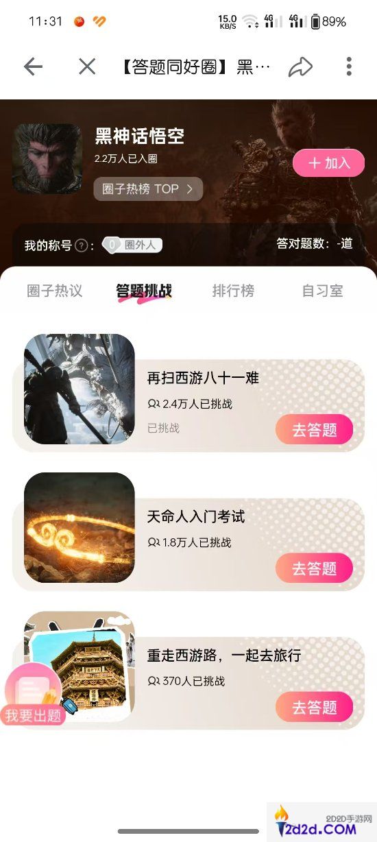 B站上线《黑神话:悟空》答题同好圈 还有排行榜