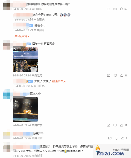 在评论区里,玩家们再次按耐不住焦急的心情,纷纷表示“坐等开门”“四年一刻 直面天命”,并对杨奇以及游戏科学表达了自己的感谢之情。还有玩家说道:“游科啊游科,你嘛时候是国单第一啊?”