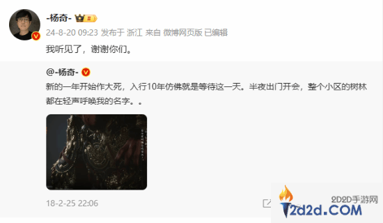辛苦终结硕果!《黑神话:悟空》杨奇回顾六年前微博