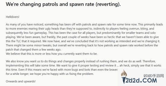 负责《地狱潜者2》的瑞典开发团队Arrowhead Game Studios对此高度关注。该团队没有回避社区对这款游戏的负面反馈,但他们也希望向玩家传达一个信息:如果对当前版本感到失望,暂时离开游戏再回来是完全可以的。