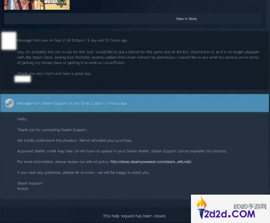对此,已经有Linux系统的玩家在Steam发起针对游戏的退款,而尽管他已经玩了很长时间,但Steam客服了解情况后依然通过了他的退款申请。在回信中Steam客服表示:“我们完全理解这种情况。我们已经退还了您的购物款。”