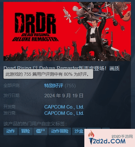 《丧尸围城:豪华复刻版》已经于昨日正式发售,目前本作的Steam评价已经从多半好评上升至特别好评。755篇用户评测中好评率为80%。