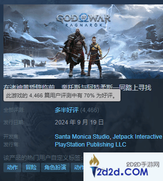 根据Steam页面显示,《战神:诸神黄昏》目前Steam评价为“多半好评”,好评率仅70%。