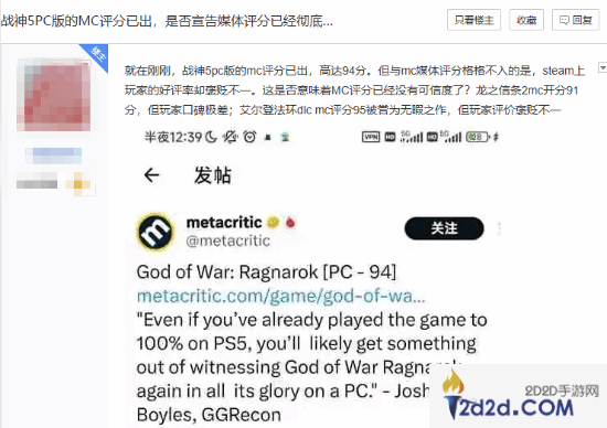 在Steam吧,有玩家直言,“战神5PC版的MC评分已出,是否宣告媒体评分已经彻底不可……”