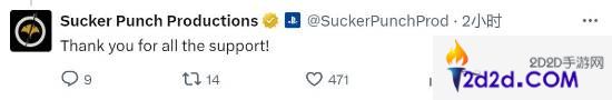 而Sucker Punch官推也是忙于回复、转发、点赞同事和玩家们的支持,“比心,好伙伴”“感谢大家的支持!”。
