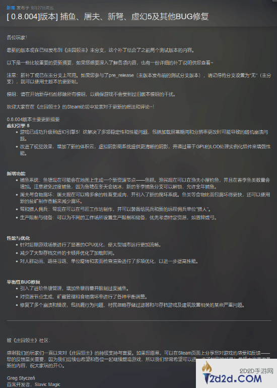 Hooded Horse日前还发布了《庄园领主》0.8.004更新的一些细节,游戏现已升级到虚幻引擎5,改进了视觉效果,并新增了一些功能,涵盖捕鱼、屠夫与新弩等方面。