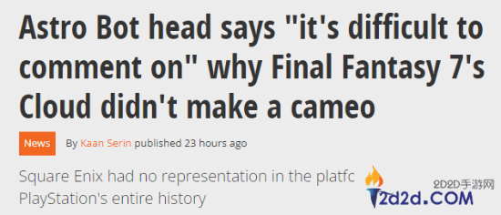 据外媒报道,开发商Team Asobi负责人Nicolas Doucet日前接受了Game File的采访,其透露开发团队考虑过让《最终幻想》克劳德客串,但从未获得Square Enix的批准。他说到“我很难对此发表评论,我们非常尊重每个发行商的选择。”