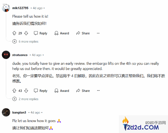 在评论区不少玩家表示羡慕,不少观望玩家表示,希望能第一时间更新游戏测评,看看游戏情况如何。