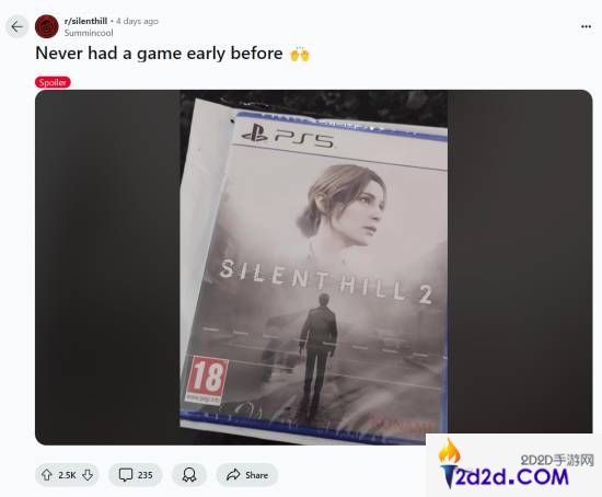 早在4天前,国外玩家Summincool在Reddit论坛发文,他向英国游戏零售商GAME预购的《寂静岭2:重制版》实体盘已经到手了。