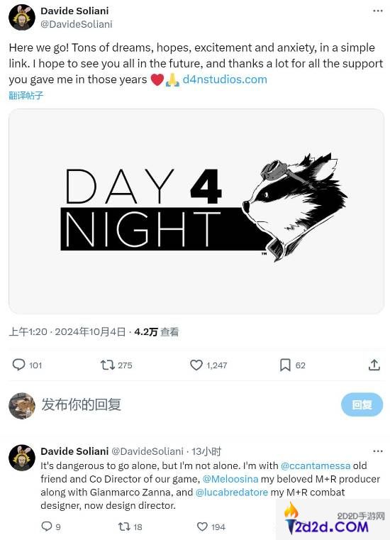 今日,前育碧米兰创意总监Davide Soliani宣布,他与《荒野大镖客:救赎》首席设计师Christian Cantamessa联手成立了一家名为Day 4 Night的新工作室。据介绍,这是一家独立游戏开发工作室,专注于打造在故事叙述和设计上具有创新性的原创游戏。