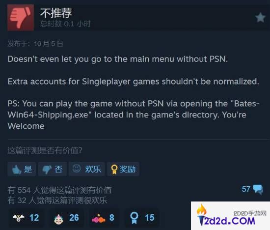 根据玩家的反馈来看,目前本作存在一些影响体验的bug,制作组被批移植工作不到位,此外还有人依然在表达对关联PSN账号的不满。