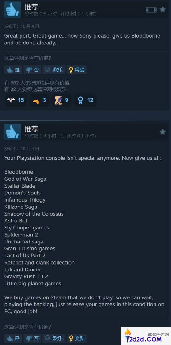 也有表达好评的玩家表示,希望索尼能让更多独占游戏登上PC:想玩《血源》啊!