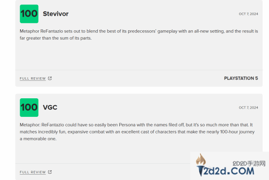 此外,GameSpot、VGC、Stevivor等媒体也给到了本作满分的评价。