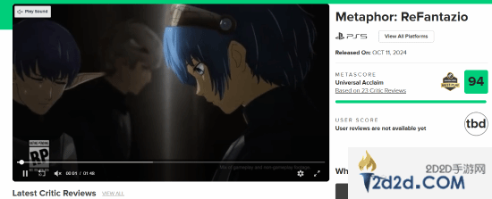 今日,《暗喻幻想:ReFantazio》媒体评分解禁。截至发稿前,M站均分94分。