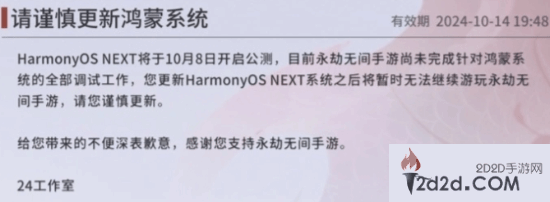 因无法适配最新鸿蒙系统 《永劫无间》手游官方称请谨慎更新