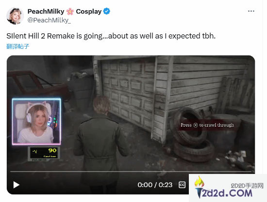 近日,碍事梨体模及知名主播@PeachMilky_在推特上分享了她游玩《寂静岭2重制版》的直播片段,并表示游戏体验与她的预期相符。她在推文中写道:“《寂静岭2重制版》开始了...大概如我所料吧。” ,显然游戏中的恐怖氛围让她感到压力巨大。