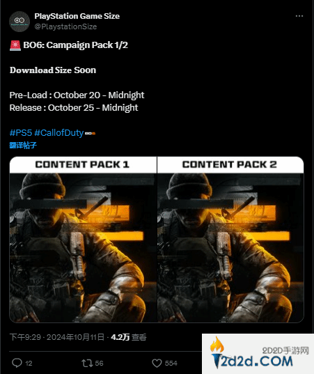 外网消息,PS平台的《使命召唤21:黑色行动6》战役模式会在北京时间10月20日凌晨开始预载,正式解锁的时间在25日凌晨0点(新西兰区玩家可提前5小时解锁)。目前尚未公布预载所需空间等信息。