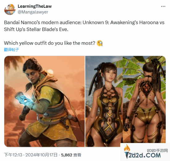 万代南梦宫旗下ACT新作《无名九使:觉醒》即将于10月18日正式上线,但游戏从各方面来看都不尽人意。日前,推主Mangalawyer将《无名九使:觉醒》哈鲁娜的服装与《剑星》伊芙的做了对比,一起来看下。
