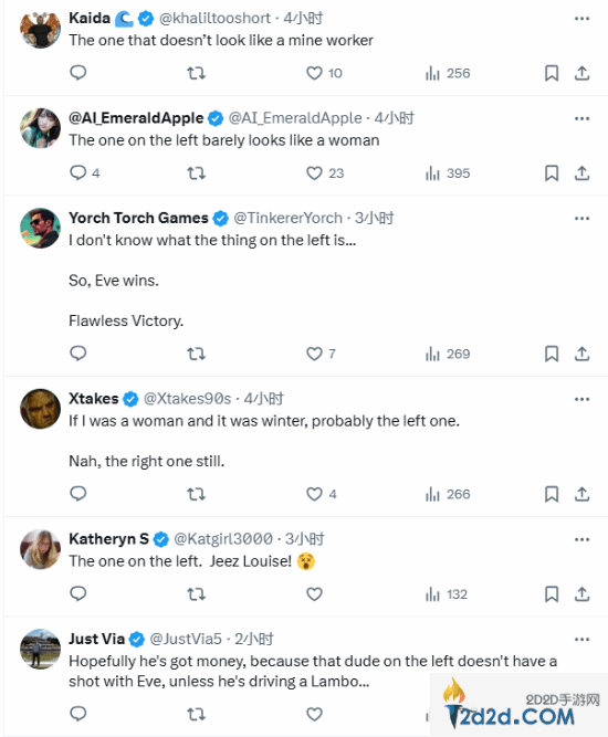 在服装方面,玩家们纷纷表示:“《无名九使:觉醒》的那个看起来几乎就不是一名女性。”“伊芙大胜利!”“西方人会选哪个呢?我会选伊芙。”“这还用选吗?哈哈。”有玩家调侃道:“为什么西方游戏卖不出去?一定是玩家的错。”