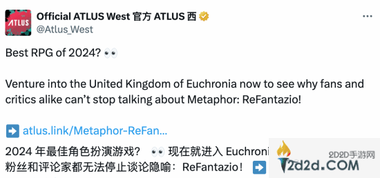 今日,ATLUS官方账号晒《暗喻幻想:ReFantazio》媒体评分图,多个满分、高分评价。拥有M站必玩金标认证。