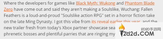 与《黑神话》和《影之刃零》不同,《明末》是一款真正以“类魂游戏”为宣传口号的动作游戏,媒体表示从其最新宣传片中感受到了其明朝末期的黑暗设定,疯狂的Boss战斗和丰富的格挡招架则令人想到了《只狼》。