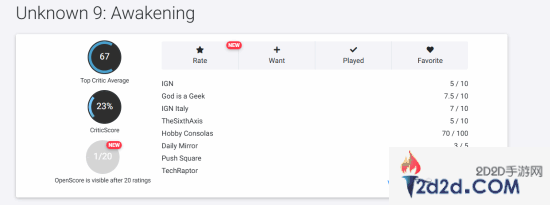 惨淡至极:万代SBI新作《无名九使:觉醒》OC站媒体推荐率仅为23%