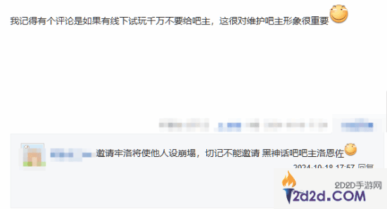 还有玩家开玩笑:“如果有线下试玩千万不要给吧主,这很对维护吧主形象很重要。”“ 邀请牢洛将使他人设崩塌,切记不能邀请 黑神话吧吧主洛恩佐。”