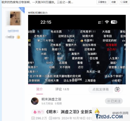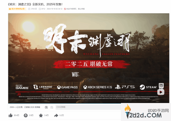 此前我们曾报道过国产类魂新作《明末:渊虚之羽》于近日公开最新预告,游戏将于2025年登陆PC、PS5以及XSX|S平台,首日XGP。贴吧近日有网友发文表示:明末的热度有点夸张啊,一天就300万播放!有明粉和清粉助力!