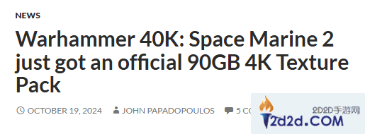 Saber Interactive的第三人称射击作品《战锤40K:星际战士2》现已发售一个多月,据外媒dsogaming报道,日前官方在Steam平台发布了适用于《战锤40K:星际战士2》的4K纹理包,纹理包免费,大小为90GB,需要有游戏本体才能安装,感兴趣的玩家可以点击下方链接进入下载。