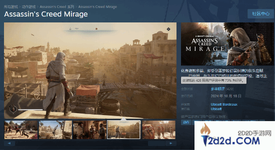 育碧《刺客信条:幻景》现已正式登陆Steam平台,截至发稿前,游戏在Steam的评价已从此前的“特别好评”降至“多半好评”,在420篇玩家评测里有73%为好评。