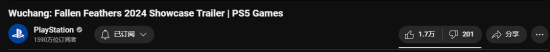 日前,国产类魂动作游戏《明末:渊虚之羽》发布的最新实机预告引发国外媒体和玩家的关注,在PlayStation官方油管频道的视频观看次数已超过41万次,并收获了1.7万次点赞。