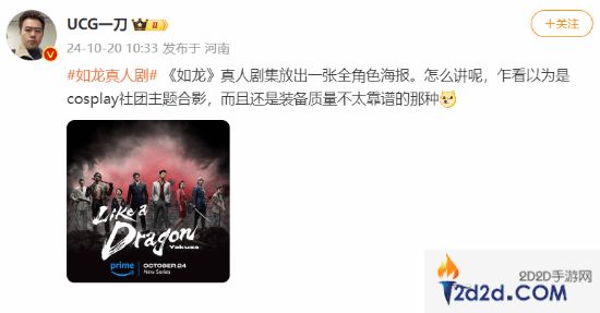 不过这个海报的效果看起来非常不让人满意。微博博主@UCG一刀吐槽道:“怎么讲呢,乍看以为是cosplay社团主题合影,而且还是装备质量不太靠谱的那种。”